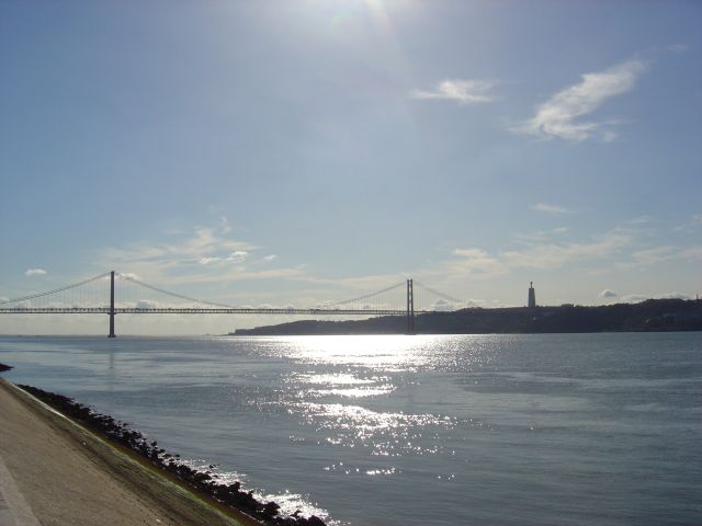 Lissabon ein. Hier sieht man die Brücke 5. April, die unweit der